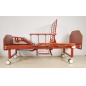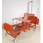 Кровать оснащена системой механических регулировок, контролирующих положение подвижных секций. Стальной каркас и ложементы кровати покрыты защитным слоем эпоксидной эмали. Ложементы пригодны для дезинфекционной обработки. Особенностью модели является наличие звукового сопровождения полного опускания и подъема секции. Боковые ограждения опускаются и защелкиваются соответствующими фиксаторами. Торцевые деревянные спинки - съемные. Кровать комплектуется выдвижным судном, крючками для подвеса мочеприемника, штангой для подтягивания и противопролежным матрасом. Колеса снабжены индивидуальными блокираторами движения.