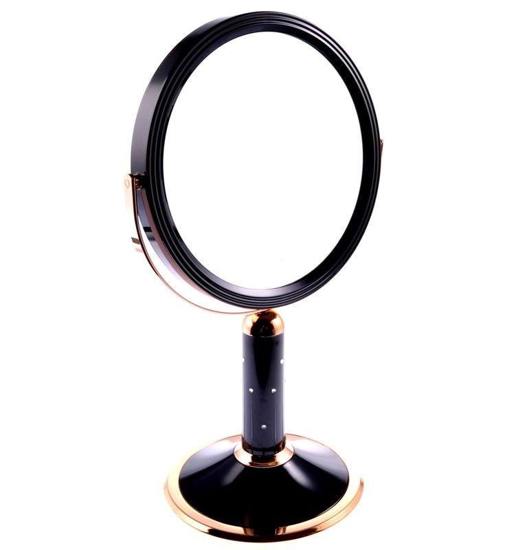 Настольное зеркало Black&Gold — привлекательная модель в черном обрамлении с золотыми вставками. Хромированный металл добавляет роскоши и блеска изделию. Удобный поворотный механизм позволяет менять стороны зеркала. Одна сторона зеркала способна увеличивать изображение в 7 раз. Рабочая поверхность представлена тончайшим стеклом высокого качества, отличающимся непревзойденной точностью изображения.