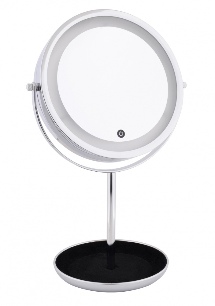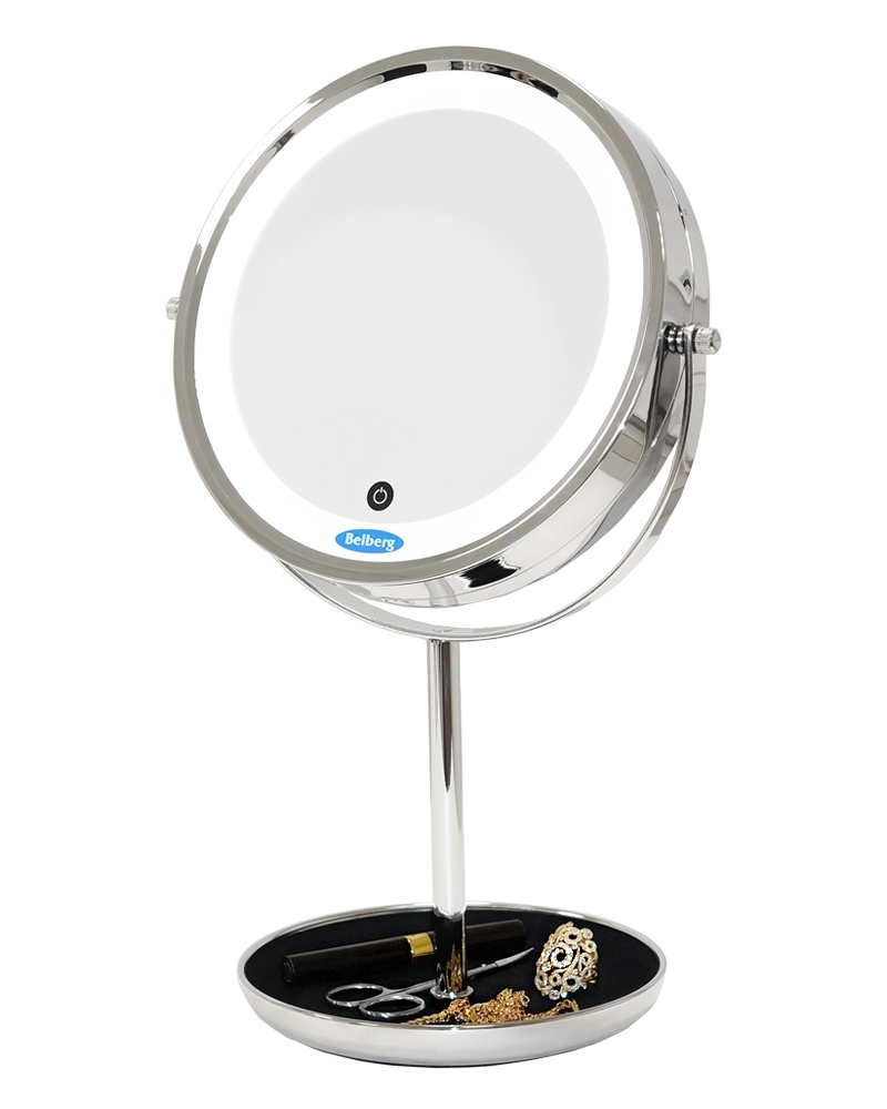 Косметическое зеркало Belberg BZ04 с подсветкой – превосходное решение для косметологического ухода и нанесения макияжа. Удобно разместится на туалетном столике любого размера. Нижнее основание в форме глубокой чаши, которая покрыта черным бархатом. Здесь можно хранить украшения и косметику. Зеркало имеет две стороны. Одна из сторон с пятикратным увеличением, что позволит рассмотреть даже мелкие детали. Работает от обычных батареек. Сенсорное управление светодиодной подсветкой.