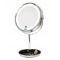 Достоинства:достаточно функциональное зеркало. Одна сторона с пятикратным увеличением, а другая – обычная зеркальная поверхность. Качество зеркал отличное. «Рабочая часть» (на которой зеркала) крутится, проворачивается беспрепятственно. По поводу подсветки могу сказать, что это тот редкий случай, когда все отлично. Яркость приличная, но в меру. Мерцания нет. Свет не бьет прям в глаза. А основание ножки выполнено в форме подставки-чаши с бархатной отделки. В общем, смотрится зеркало богато и в использовании не подводит.