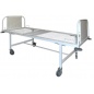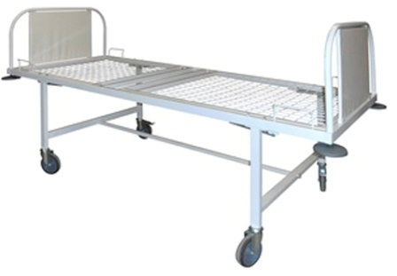 Её несущая рама состоит из профильной стальной труба, а ее ложе из стальной сварной сетки, потому она может выдерживать человека массой до 200 кг. Колеса с индивидуальными тормозами обеспечат её передвижение по палате или между отделениями. Спинки сделаны съемными с белыми вставками из ЛДСП, а по углам ложа предусмотрены защитные бамперы. В комплектацию кровати входят боковые ограждения и штатив.