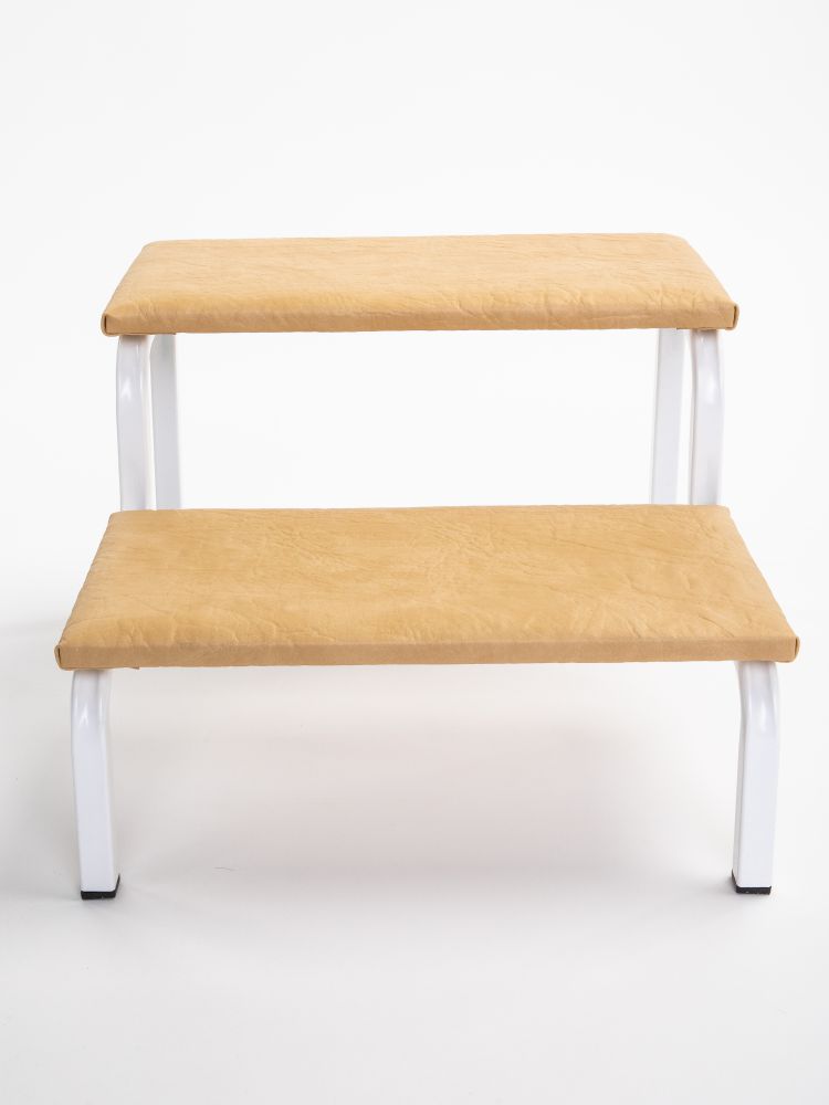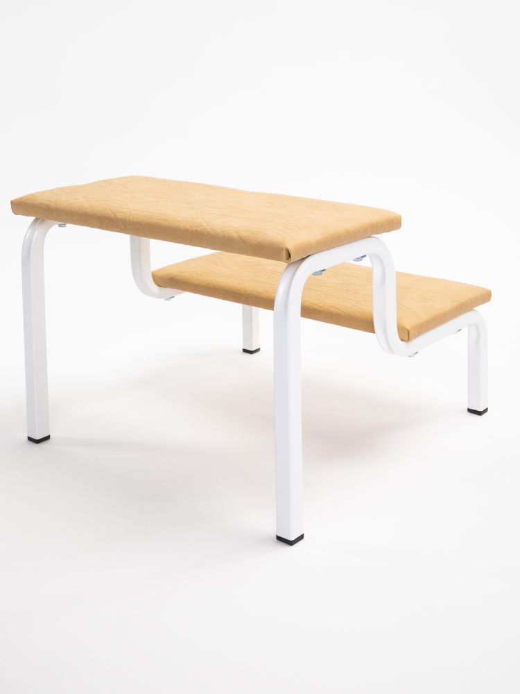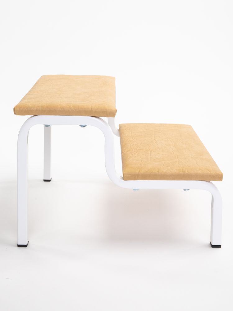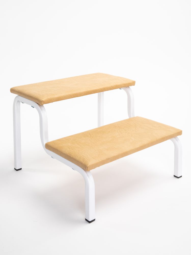 Компактные габариты позволяют использовать приспособление в любой ванной комнате или сантехническом помещении общественного назначения. Верхняя часть ступеньки выполнена из фанеры и обтянута винилискожей светло-бежевого цвета. Ступенька легко собирается и не требует специального ухода – поверхность можно мыть и дезинфицировать.