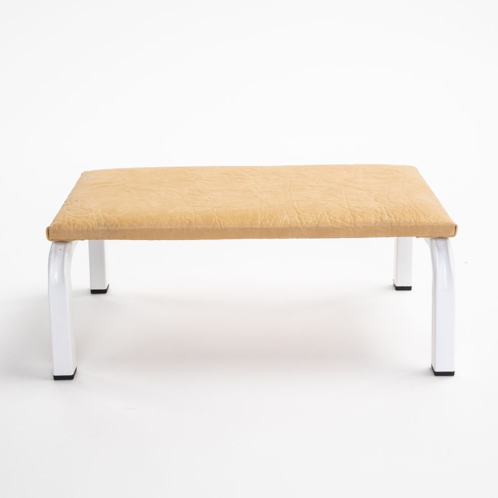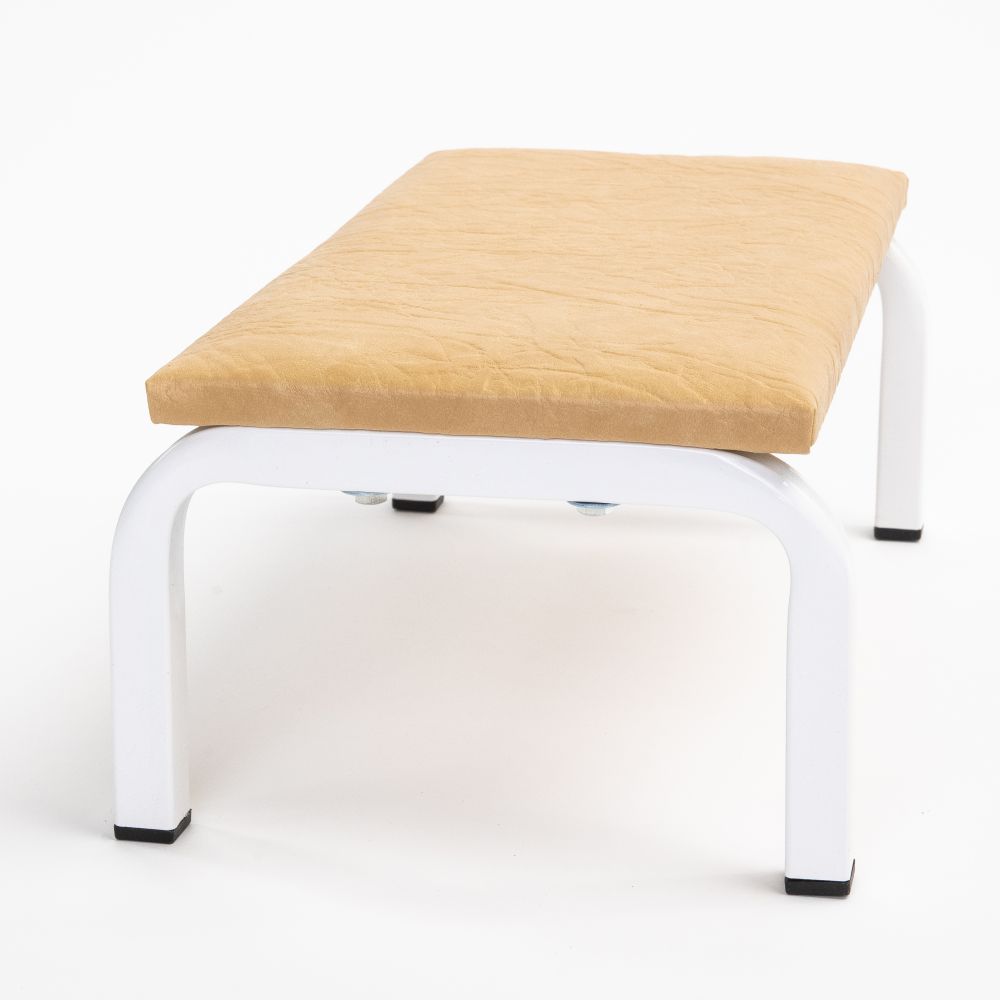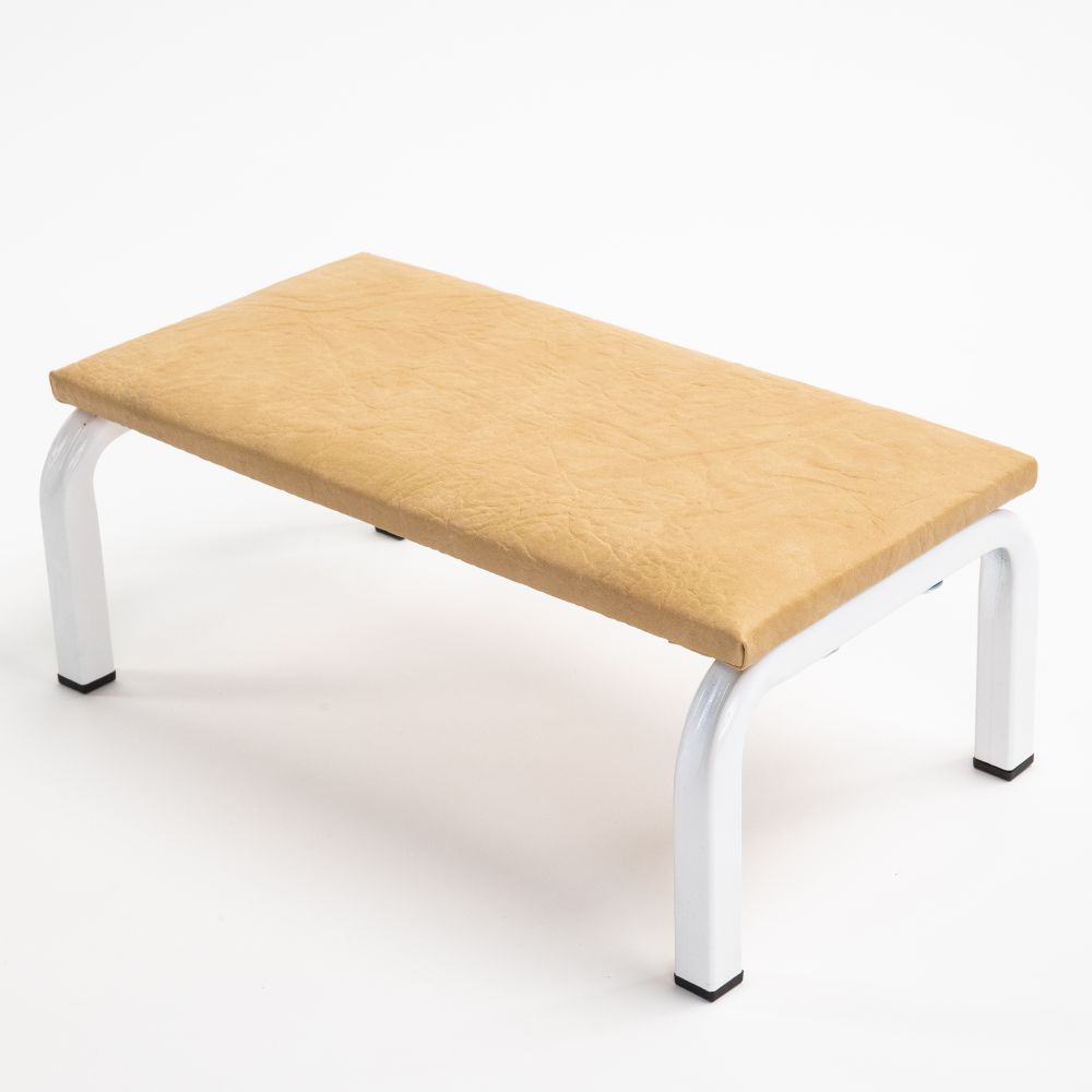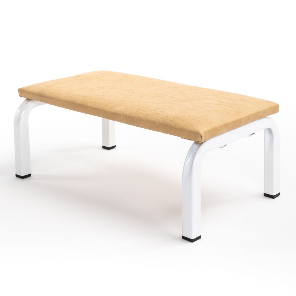 Выполнена на стальном каркасе с полимерно-порошковым покрытием. Ножки закрыты пластиковыми заглушками, которые не царапают покрытие пола и не скользят. Верхняя часть ступени обтянута водонепроницаемой винилискожей. Конструкция легко собирается, и выдерживает нагрузку до 120 кг.