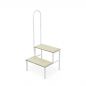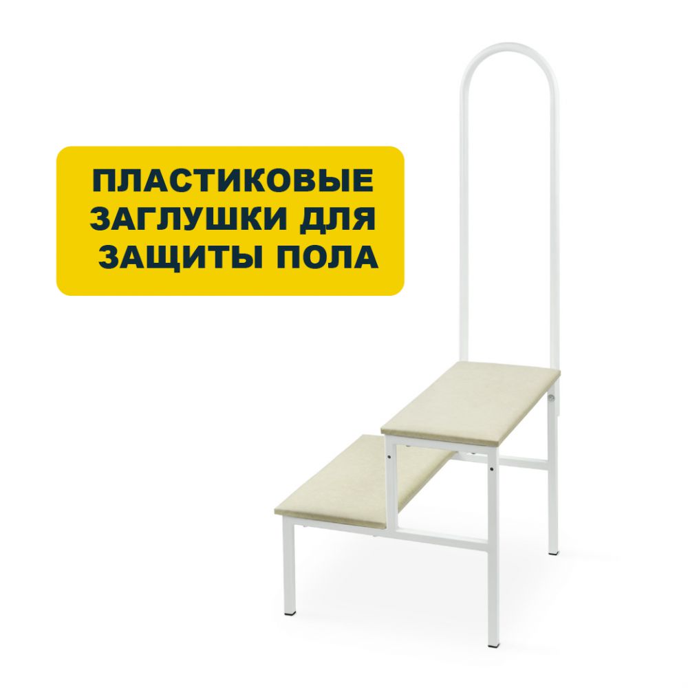 Выполнена на стальном каркасе с полимерно-порошковым покрытием. Ножки закрыты пластиковыми заглушками, которые не царапают покрытие пола и не скользят. Верхняя часть ступени обтянута водонепроницаемой винилискожей. Конструкция легко собирается.
