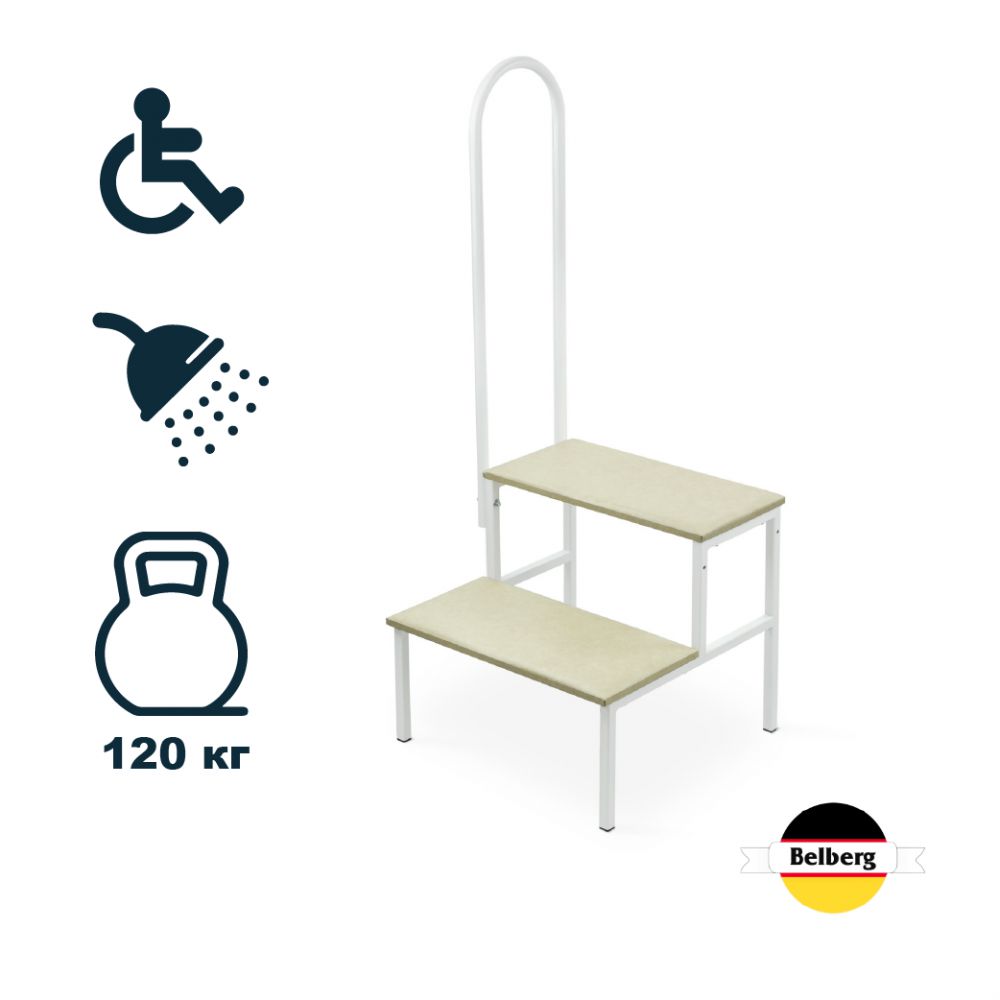 Вспомогательная ступень c поручнем СТ-3 Belberg подходит как для санитарно-гигиенических процедур, так и для использования в быту.