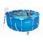 Каркасный бассейн BestWay 56420 отличается высокой прочностью и устойчивостью. Чаша выполнена из высококачественного трехслойного ПВХ - два слоя плотного винила и один - полиэстер для особой прочности. Каркас металлический нержавеющий оцинкованный. Не требует бетонирования и подготовки ямы, все, что нужно, это плоская, горизонтальная площадка. Сезонный бассейн (рекомендуется разбирать на холодное время года) обладает простой конструкцией - может быть легко разобран и собран заново. Время сборки и подключения бассейна не более 1 часа. Удобный сливной клапан позволяет присоединить садовый шланг, что дает возможность слить воду в любое место.