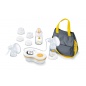 Молокоотсос легко разбирается, имеет адаптер для бутылочек, мягкие силиконовые вставки, набор бутылочек с крышками. Настройка продолжительности сцеживания настраивается понятийным интерфейсом блока управления.