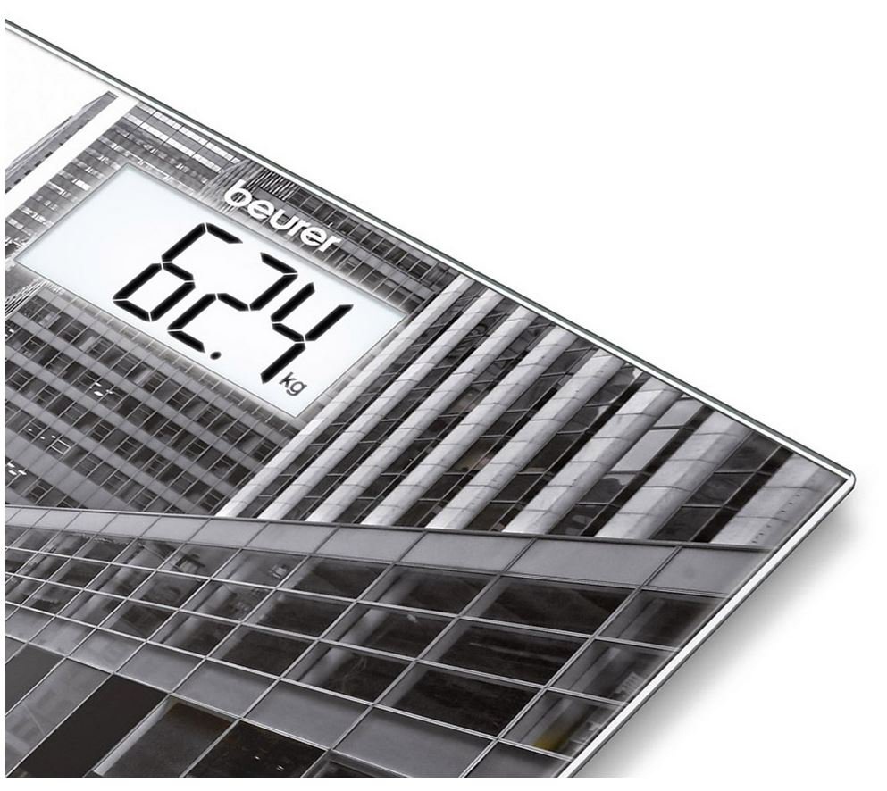 К недостаткам стоит отнести базовый функционал устройства. У весов нет анализаторов мышечной и жировой массы, памяти на несколько последних измерений, а также отсутствует возможность индивидуальной настройки профиля для каждого члена семьи. Дизайнерские весы Beurer GS203 передают атмосферу большого города. Стеклянная панель закалена специальным образом, обеспечивающим изделию больший срок службы. Весы оснащены большим информационным дисплеем, отображающим значение веса в заданных единицах измерения. В данную модель включены индикатор перегрузки и функция автоматического отключения. Включение прибора осуществляется по технологии быстрого старта. Ограничение весовой нагрузки составляет 150 кг.