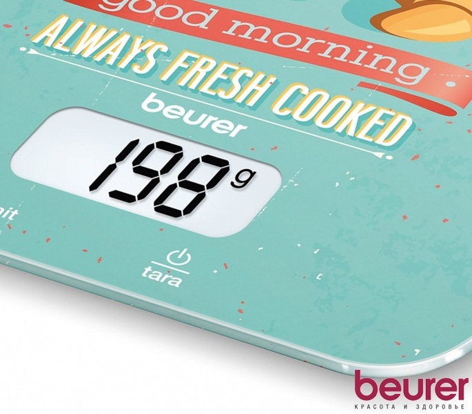 Ультратонкие кухонные весы Beurer KS19 Breakfast предназначены для определения веса продуктов. Максимальное отображаемое значение веса - 5 кг.