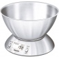 Особенностью данной модели электронных весов является наличие дополнительных функций - термометра и таймера. Объем чаши составляет 1,5 литра, и ее можно мыть в посудомоечной машине. Максимальный предел взвешивания составляет 5 килограмм. Если масса взвешиваемых продуктов больше этого значения, вы увидите на экране предупреждающий сигнал. Кухонные весы не только покажут точную массу продуктов, но и определят комнатную температуру благодаря термометру и отмерят точный временной отрезок благодаря функции таймера.