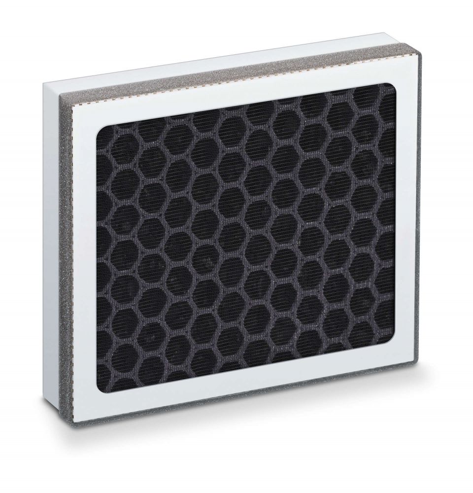 В него входят три фильтра - фильтр с активированным углем для нейтрализации неприятных запахов; HEPA-фильтр E 10, который отфильтровывает бактерии, вирусы и пыльцу; фильтр грубой очистки, который убирает большие частицы пыли и волоски.