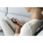 Управление производится с помощью проводного пульта. Пользователь может выбрать зону воздействия, а также установить интенсивность вибрации и включить подогрев. При этом боковые участки спинки никак не участвуют в массаже, хотя внешне выделены как отдельные сегменты. Устройство самостоятельно отключится через 15 минут, пользователь не может задать время индивидуального сеанса по таймеру. Массажная накидка Beurer MG155 имеет три массажных зоны, благодаря чему охватывает большую поверхность тела, глубоко расслабляя зоны спины, бедер и шеи.