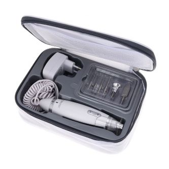 В комплекте идут десять разных насадок для педикюра и маникюра с сапфировым напылением; автоматически включающая лампа, которая активизируется при включении аппарата; пластиковая емкость для уборки ногтевой пыли.