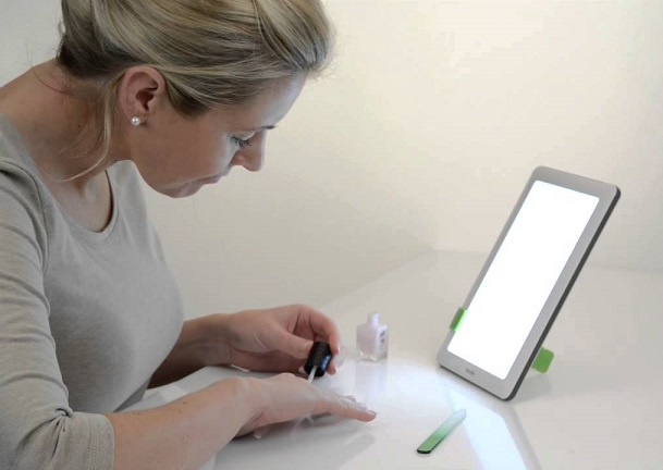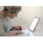 Прибор не имеет никаких отвлекающих элементов, кроме большой световой панели. Кнопка включения/выключения прибора расположена в верхней части. Благодаря универсальной подставке устройство можно располагать вертикально и горизонтально.
