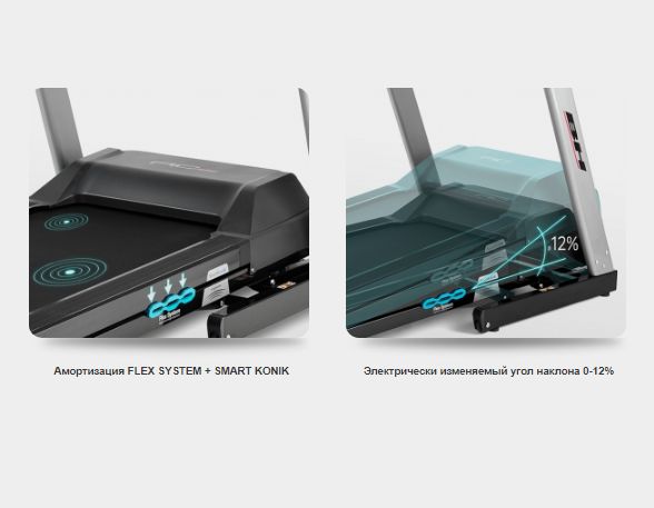 С беговой дорожкой RC09 TFT можно достичь всех спортивных целей не выходя из дома. Параметры модели отлично подойдут для любителей и опытных пользователей. Тренажер отличается шириной беговой полотна, которая составляет 55 см. Благодаря такой ширине, занятия на дорожке становятся максимально безопасными и комфортными для пользователей. Амортизация беговой дорожки представлена сочетанием двух элементов - FLEX SYSTEM и SMART KONIK. Данная система поглощает удары во время бега в 2 этапа. За счет такого подхода снижается эффект прыгучести на поверхности и сокращается вероятность получения травм. Touch&Fun сделает тренировку более увлекательной, так как открывает все разнообразие мультимедийных возможностей и предоставляет доступ к миру онлайн контента (выход в Интернет, ТВ, просмотр видео и многое другое). Наслаждайтесь полностью настраиваемым программным обеспечением. Софтверные решения позволяют адаптировать программы и приложения для тренировок при помощи сенсорного 9-дюймового TFT-экрана.