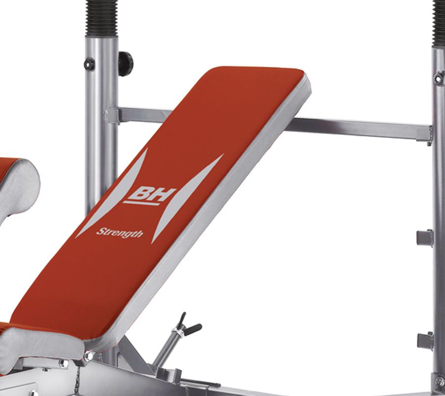 Многофункциональная скамья для жима со стойками BH Fitness Optima Рress для домашнего использования. Оборудование предназначено для жима штанги от груди, разгибания-сгибания ног и проработки бицепса. Тренажер оснащен большим количеством преимуществ: УНИВЕРСАЛЬНОСТЬ. Благодаря GLOBAL GYM, пользователь сможет прокачать все основные группы мышц верхней и нижней части тела в домашних условиях. ПРОЧНАЯ КОНСТРУКЦИЯ. Конструкция разработана специально, чтобы выдерживать максимальное напряжение 100 кг. ОТКИДНАЯ СПИНКА. Многопозиционная опора, обеспечивающая постоянную поясничную поддержку. ГРИФ ДЛЯ ДИСКОВ. Легко и удобно храните диски на специально предусмотренных грифах.