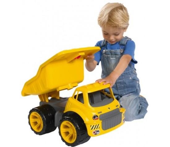 Машинка Big Maxi Truck станет отличным подарком для любого мальчишки. Она обладает очень прочным корпусом из высококачественного пластика и позволяет пользоваться ею не только как игрушкой, но и как детской каталкой. Самосвал может поднимать кузов, и в него можно загружать что угодно, начиная с песка и заканчивая различными мелкими предметами.