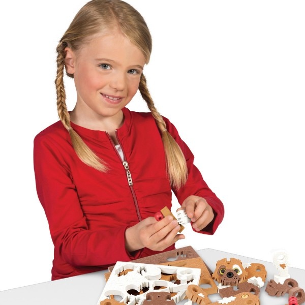 Не можете завести щенка? Конструктор Bloco «Щенок» из серии «Build a Friend» к вашим услугам! В комплект для моделирования входят 62 детали, из которых Вы можете собрать себе маленького друга. Формируйте фигурку, закрепляя мягкие детали из пенополиуретана на пластмассовые шарниры. В пошаговой инструкции подробно рассказано и показано, как крепить детали и в каком порядке. Тело пёсика остаётся неподвижным, зато лапки, ушки и хвостик вращаются и легко принимают нужное положение. К тому же щенку можно менять выражение мордочки, просто повернув детали! Разыграть с ребенком сценку, занять место в интерьере, отправиться в плаванье по ванне? Всё это может сделать Щенок из конструктора Блоко! Играя с нашими конструкторами, ребёнок может развивать мелкую моторику, логическое мышление, умение следовать инструкции, конструкторские навыки и многое другое! Набор рассчитан на детей 5-10 лет, но мы уверены, что подобный набор может заинтересовать и взрослых. Ведь конструктор Bloco не ограничивает фантазию - из деталей можно собирать абсолютно другие, зачастую очень неожиданные, предметы.