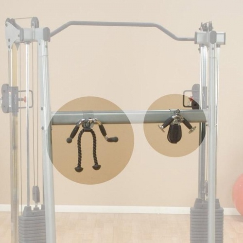 Опция для хранения аксессуаров на кроссоверах. Удобное приспособление чтобы повесить полотенце и хранить тяги к тренажеру. Легко устанавливается на кроссовер.