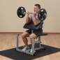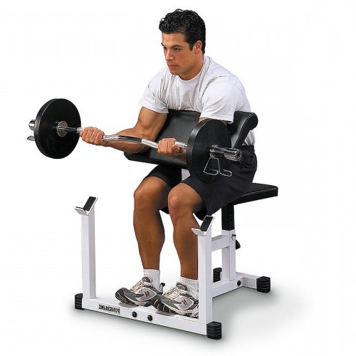 Скамья для тренировки бицепса со штангой или гантелями. Тренажер помогает нарастить общую мышечную массу бицепсов, включая наиболее трудную для тренировки нижнюю часть. Скамья установлена под оптимальным углом, обеспечивая тем самым максимальное выпрямление руки и полную амплитуду движений, и в то же время, уменьшая нагрузку на локти и нижнюю часть спины. Толстые и плотные подушки сидения и упора для рук обеспечивают комфорт тренировки.