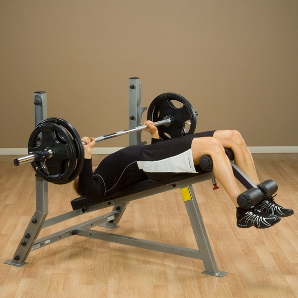 Скамья Body Solid SDB351 создана для выполнения жима штанги, при положении пользователя вниз головой. Скамья имеет отрицательный угол наклона. Фиксаторы для ног имеют мягкие валики. Опорная стальная стойка оборудована трехуровневыми штанговыми упорами. Обивка сидения представлена DuraFirm™ - материалом, устойчивый к истиранию, пригодным для мытья.