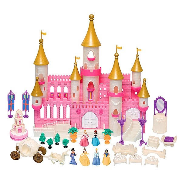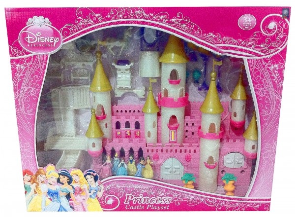 Все детали выполнены с необычайным сходством с мультипликационными зарисовками и персонажами. Карета с лошадкой поможет принцессам быстрее добраться на бал, а большое зеркало подготовиться к торжеству. Внутренний двор можно украсить растениями, большим фонтаном и очаровательными скамейками.