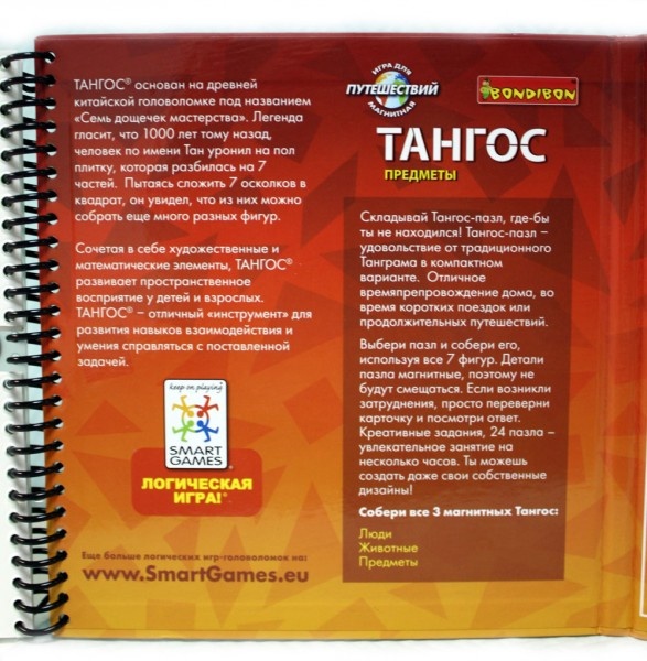 Тангос «Предметы» представляет собой замечательную игру, которая рассчитана на одного участника. Такую вещь удобно взять в путешествие для веселого времяпрепровождения в долгом пути.