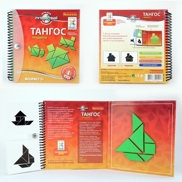 Цель представленной игры заключается в том, что необходимо выбрать задание и сложить пазл с использованием всех предложенных фигур. Элементы игрушки магнитные, поэтому будут надежно закрепляться. Тангос представляет 24 задания разных уровней сложности.