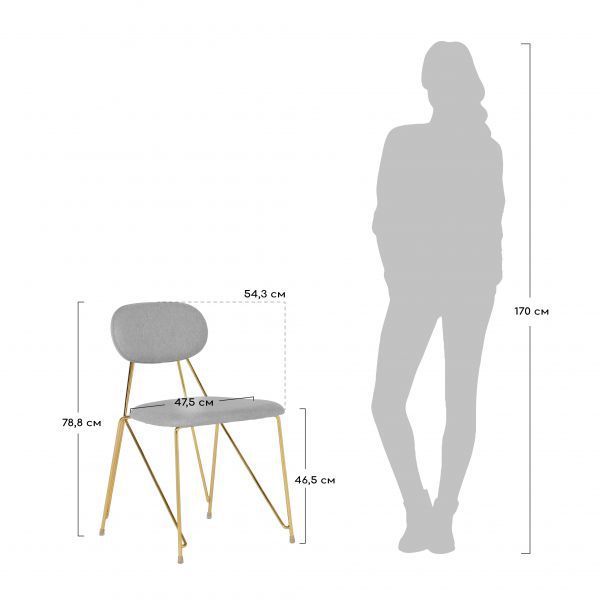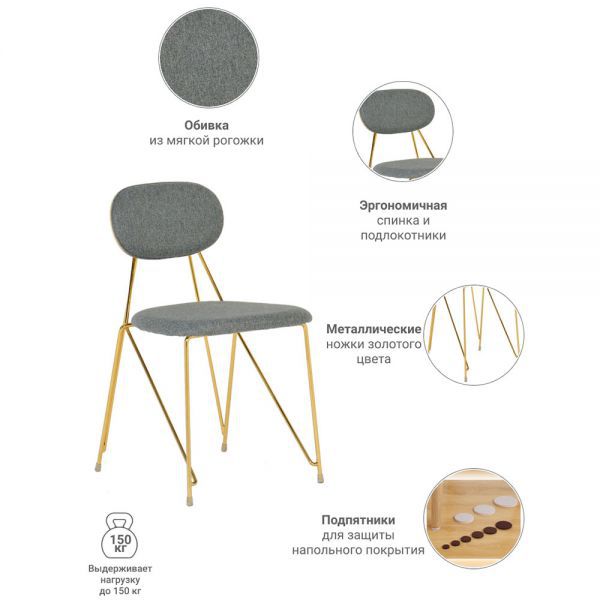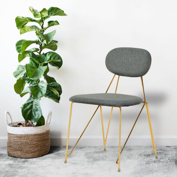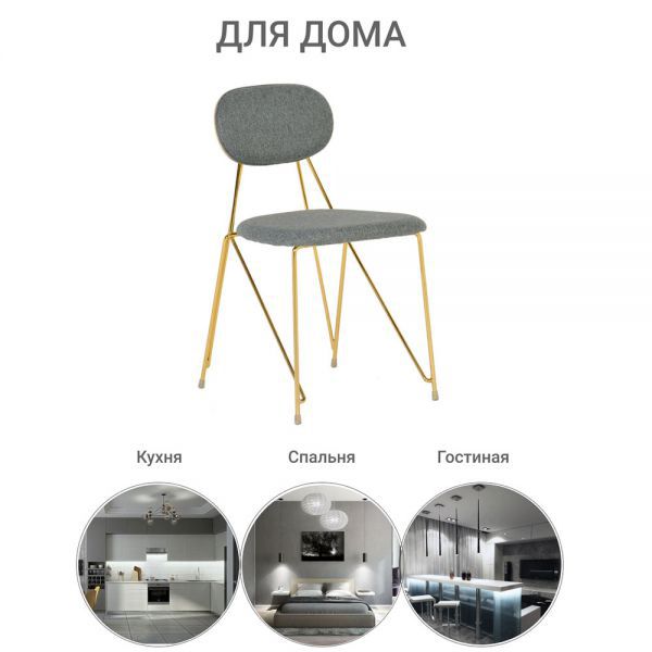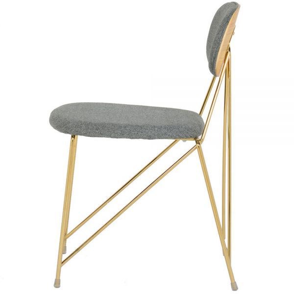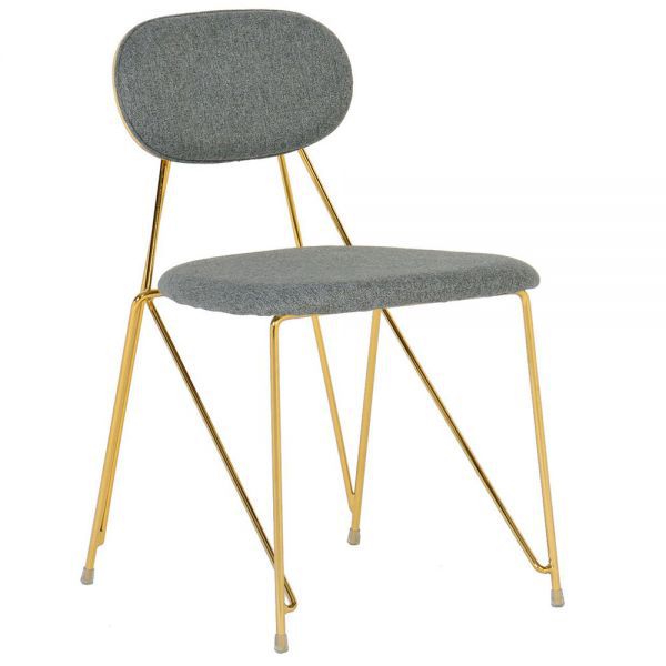 Утончённые хромированные золочёные ножки и тонкая фанерованная спина, обитая с внутренней стороны тканью - это оригинальный и необычный дизайн стула Alice.