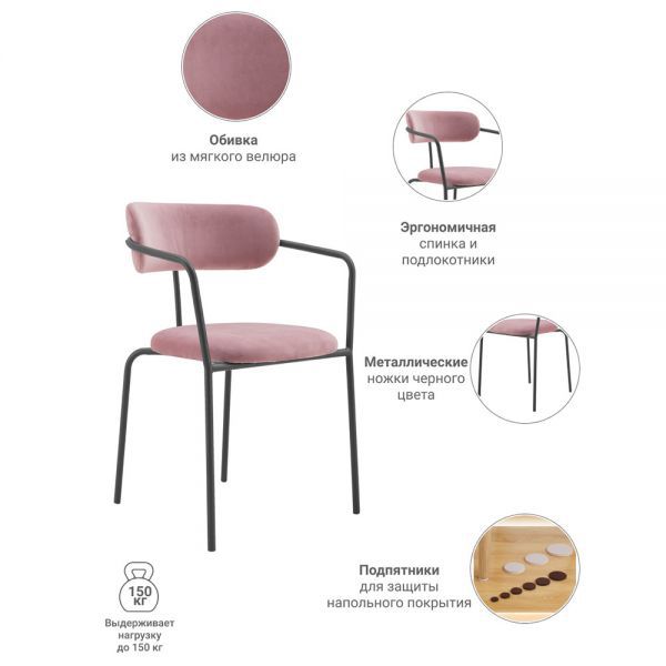 Стулья Ant — идеальное решение для вашего интерьера. Они будут отлично смотреться не только в гостиной, но и станут интересным решением для вашей спальни. Подойдут стулья и для кухни, а также для кафе и ресторанов с шикарным дизайном. Пудровый цвет отлично дополнит яркий интерьер или станет эффектным акцентом в нейтральном дизайне. Мягкая, приятная обивка из велюра на сиденье и спинке стула делает его еще более комфортным. Металлическое основание прочное и долговечное, оно способно выдержать вес до 150 кг!