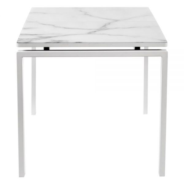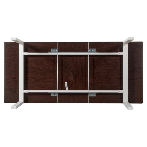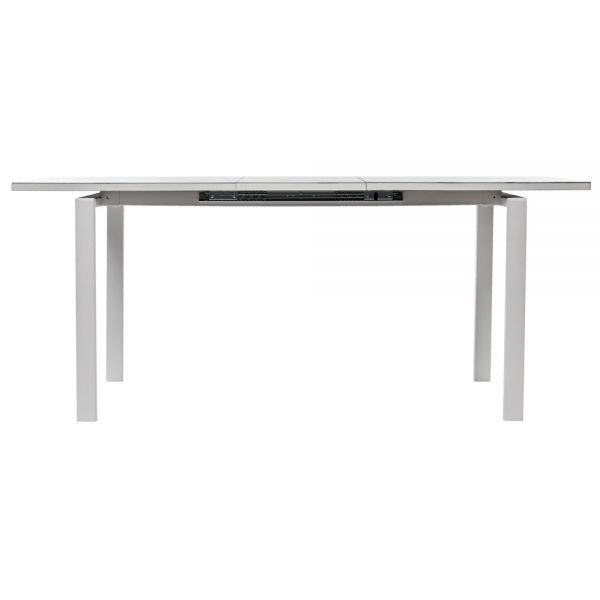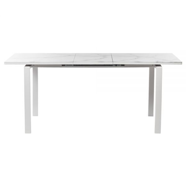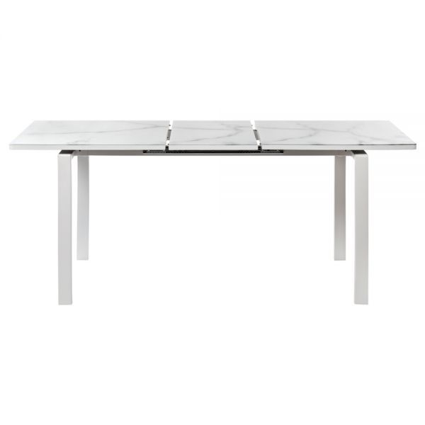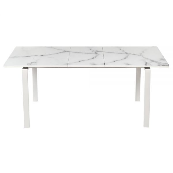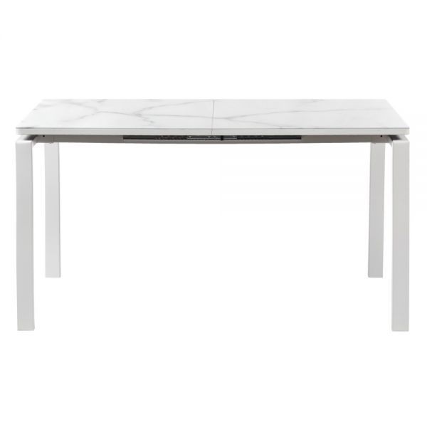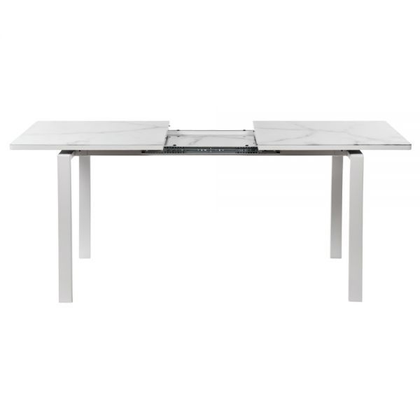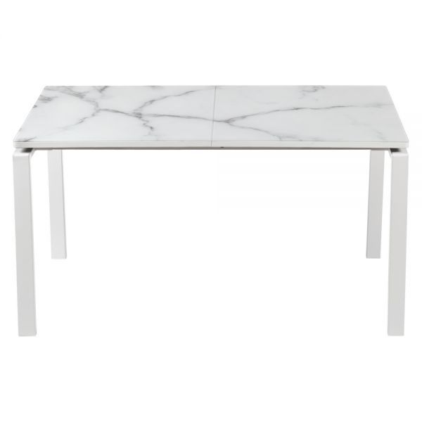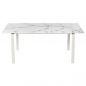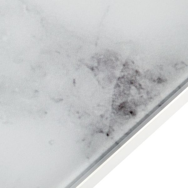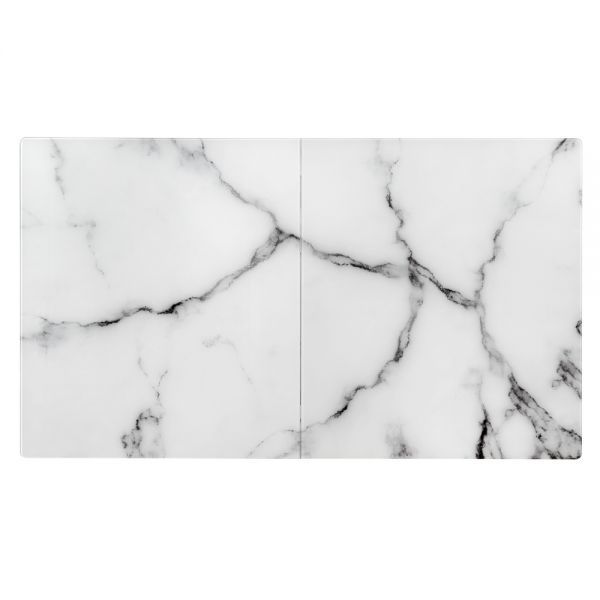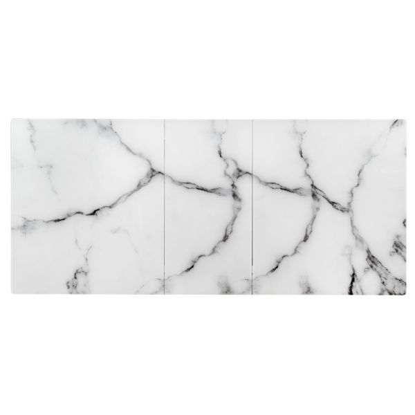 Раскладной стол с "парящей" столешницей из стекла OptiWhite толщиной 4мм и рисунком под натуральный камень, на основании из ЛДСП 22 мм, станет центром притяжения внимания. Центральная вставка позволит увеличить стол на 40 см с 140 до 180 см. Прямые устойчивые металлические ножки позволят с комфортом разместиться большой компании.