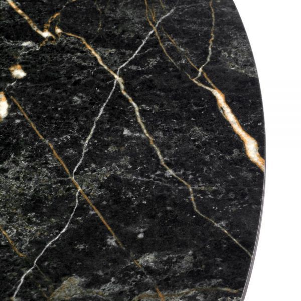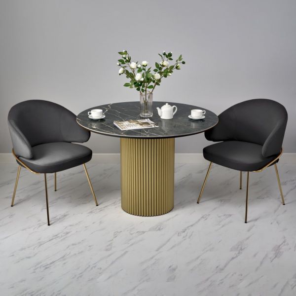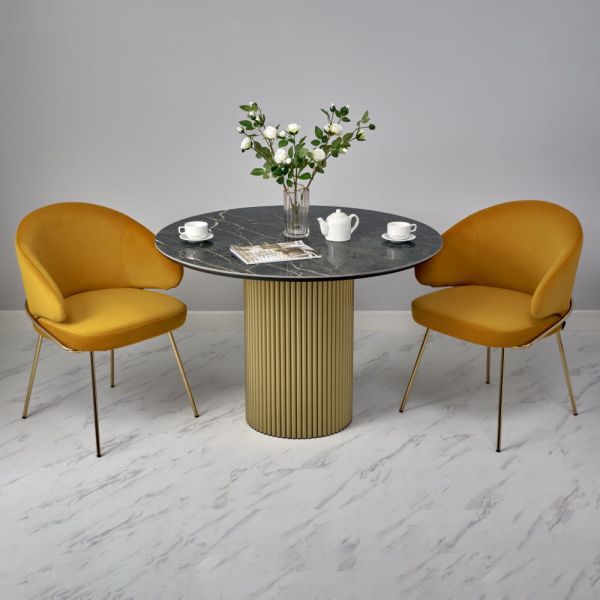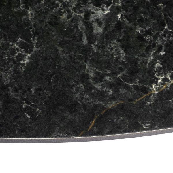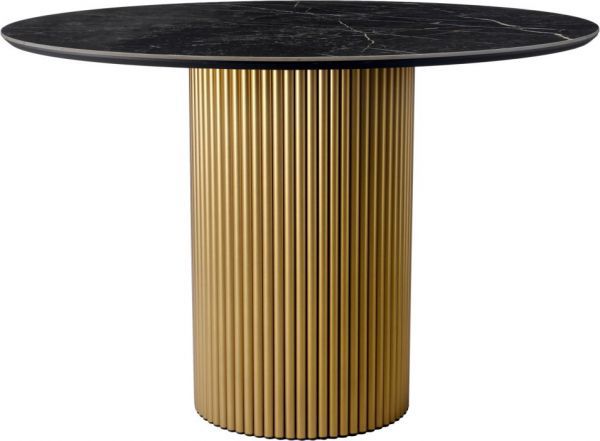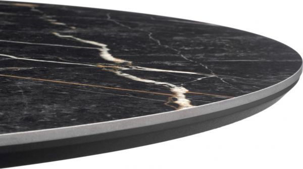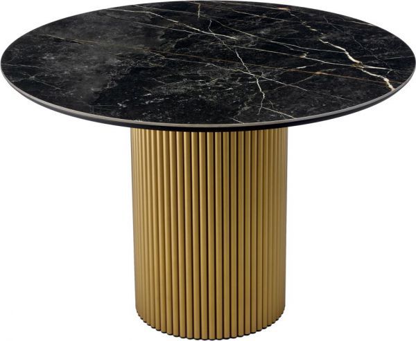 Стильный нераздвижной стол Aura – идеальное сочетание элегантности и функциональности. Стол Aura обладает глянцевой премиальной круглой столешницей из керамики, имитирующей чнрный мрамор, диаметром 110 см.