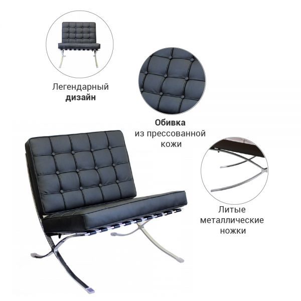 Классика современного дизайна кресло Barcelona, созданная Людвиг Мис ван дер Роэ в 1929 для Всемирной Выставки в Барселоне. Кресло в производстве почти 80 лет и по-прежнему остается иконой дизайна, «обязательной» частью в домах и офисах ценителей искусства, архитекторов и дизайнеров. Производимое по первоначальными спецификациям, кресло Barcelona продолжает быть олицетворением стиля. Этот предмет современного искусства идеально дополнит вашу гостиную, кабинет, зону отдыха, спальню или офис.