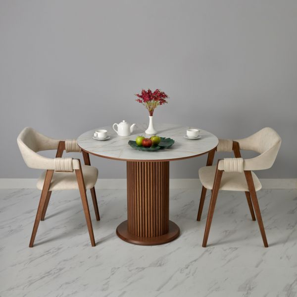 Cтол Bloom - современный обеденный стол из натурального массива бука с круглой столешницей из австрийского МДФ и HPL. Подстолье стола имеет балясину из натурального бука. Стол отличается своей массивностью, он прекрасно подойдет для классического и интерьера в стиле модерн, для кухни и для просторной гостиной. Размер стола: D105см, высота 75см. Стол поставляется в разобранном виде, 2 коробки