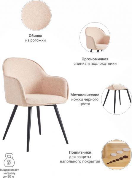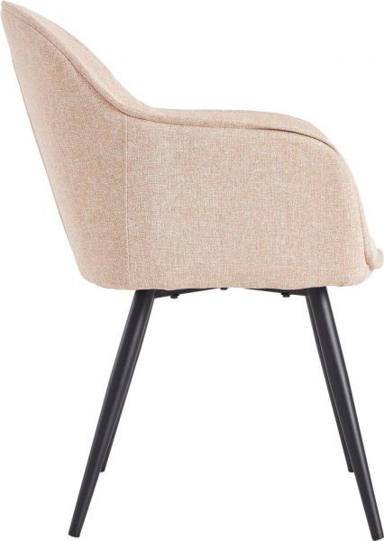 Стул Frida такой же мягкий и удобный, как кресло и тоже имеет подлокотники. При этом он намного легче, мобильнее и занимает меньше места. Отличительная особенность серии в использовании удобных подлокотников и мягкой рогожки для обивки. Нейтральный бежевый цвет подчеркнет классический интерьер. Сочетание бежевого и черного цветов — это классика, в которой стулья для кухни или гостиной подчеркнут строгость и изысканность интерьера. А металлические ножки будут отлично сочетаться с мебелью с аналогичными ножками или фурнитурой.