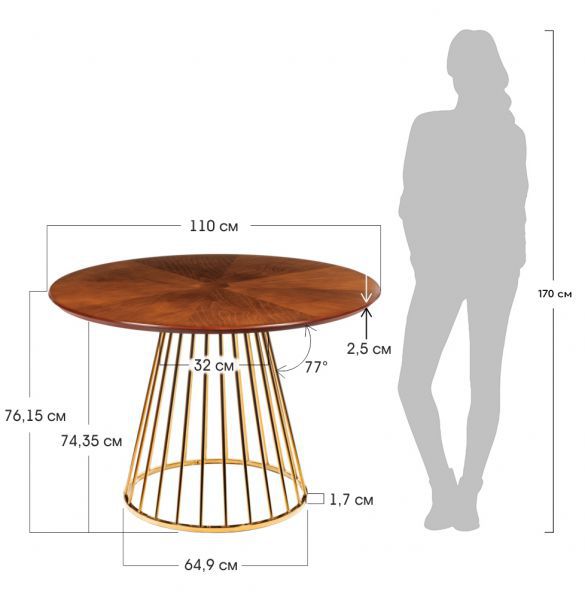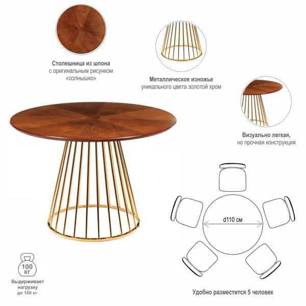 Стол Bradex Home Liverpool 110 см шпон орех "солнышко"