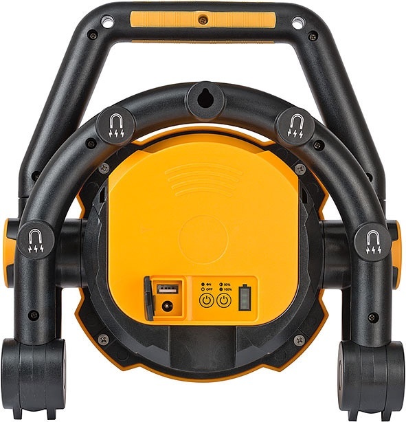Данная модель сделана из сверхпрочного пластика и оснащена яркими светодиодами, которые работают длительный период. Благодаря им Вы получите мощное освещение большой площади. В устройстве есть четыре магнита, с их помощью Вы сможете прикреплять данную модель на трубу или любую другую металлическую поверхность или же брать просто в руку. С помощью одной кнопки можно включать и выключать лампу без особой сложности. Есть специальный индикатор, который контролирует полную разрядку и зарядку аккумулятора.