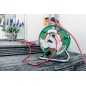 Удлинитель на катушке - это незаменимая вещь на дачных участках или если у Вас частный дом. Он может использоваться как в доме, так и на улице в течение непродолжительного времени. Имеет систему защиты от влаги и пыли, которая предотвращает попадание этих негативных факторов в розетки и на вилки. В комплекте идет кабель - очень гибкий и мягкий, длиной 50 метров. Он выдерживает температуру до -35 градусов, сохраняя при этом свои защитные свойства. Также устройство оснащено системой Anti Cable Twist System, которая снижает возможность запутывания кабеля во время намотки, а для более удобной намотки предусмотрена ручка и направляющая ось.