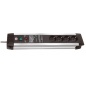 Корпус этого устройства выполнен из матового алюминия, который делает его ударопрочным. Оснащен четырьмя розетками, все они заземлены и имеют защиту от детей, а также кнопкой включения/выключения и предохранителем на 16 А. Кабель для подключения имеет длину три метра и выполнен из устойчивого к механическим повреждениям материала.