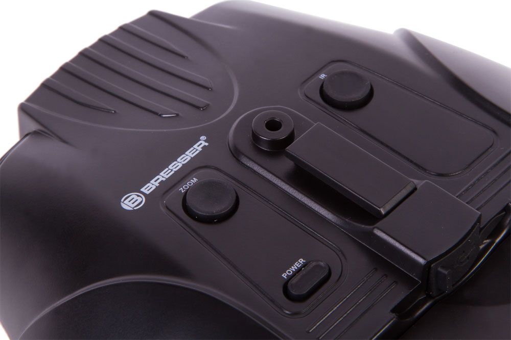 Бинокль ночного видения Bresser 1–2x относится к цифровым ПНВ, поэтому он нечувствителен к избыточному световому излучению – он не пострадает даже в случае, если вы включите его при свете дня. Прибор снабжен встроенной ИК-подсветкой, яркость которой можно изменять ступенчато. Всего доступно 7 фиксированных значений. Диапазон обнаружения составляет около 70 метров. ПНВ надевается на голову при помощи удобного крепления, благодаря чему руки остаются свободными – бинокль не стесняет движений.