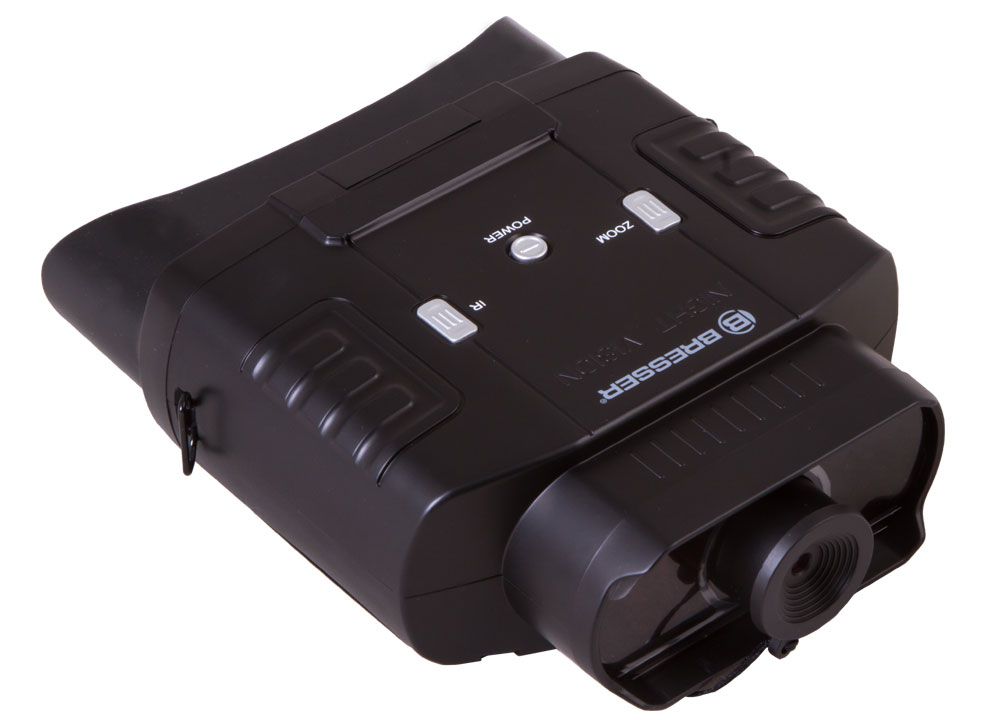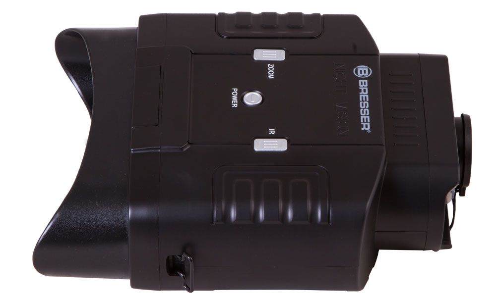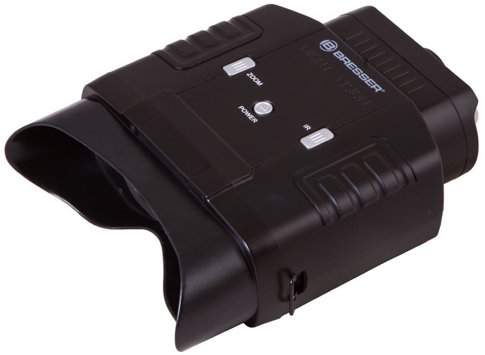 Максимальная дальность обнаружения составляет 100 метров. Картинка выводится на встроенный ЖК-экран. Для настройки резкости изображения используется колесо фокусировки, расположенное на объективе бинокля. Цифровой бинокль ночного видения Bresser 3x20 работает от батареек. Их можно приобрести в любом магазине и менять прямо во время наблюдений. Широкий диапазон рабочих температур позволяет использовать этот прибор даже в сильные морозы. Есть штативное крепление стандартного размера.