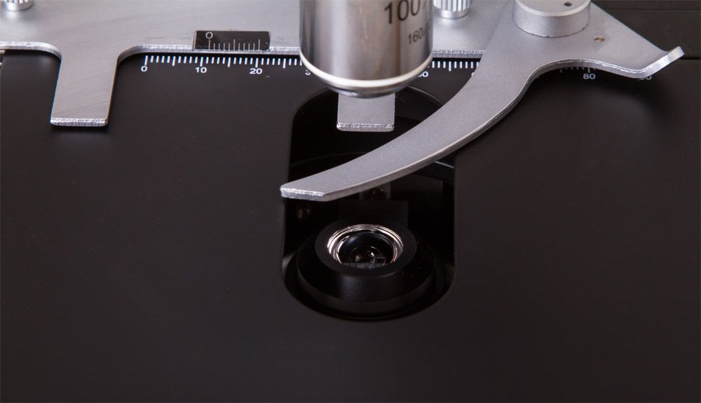В микроскопе установлена галогенная подсветка с настройкой яркости, есть микрометрическая регулировка по двум осям и удобный предметный столик с нониусом. При необходимости можно настраивать освещение по методу Келера. Для питания подсветки используется сеть переменного тока.