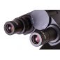 Микроскоп обеспечивает увеличение в диапазоне от 40 до 1000 крат. Ахроматическая оптика эффективно убирает аберрации, передает четкое и насыщенное изображение по всему полю зрения. Револьверное устройство вмещает четыре объектива разной кратности, 100-кратный объектив можно использовать для масляной иммерсии. Тринокулярная насадка имеет удобный для длительной работы наклон, в отдельную окулярную трубку можно устанавливать цифровую камеру (приобретается отдельно).