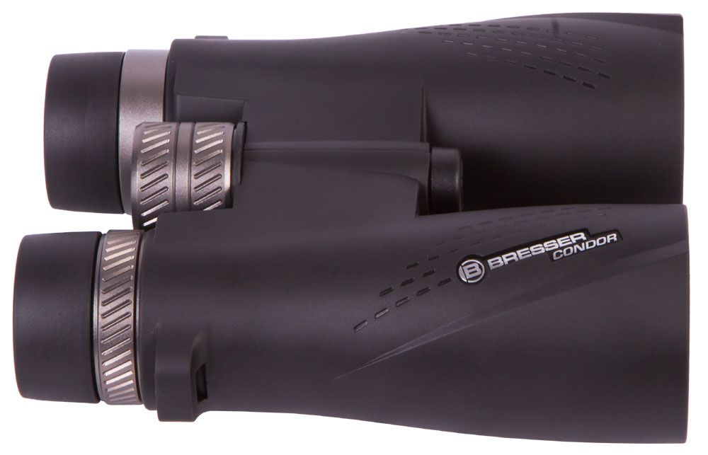 Bresser Condor UR 10x50 можно устанавливать на штатив. Кроме того, в бинокле можно настраивать диоптрии на правом окуляре, регулировать расстояние между зрачками, выбирать максимально удобное положение поворотно-выдвижных наглазников. Резкость настраивается при помощи центрального барабана фокусировки.