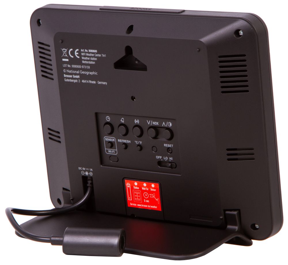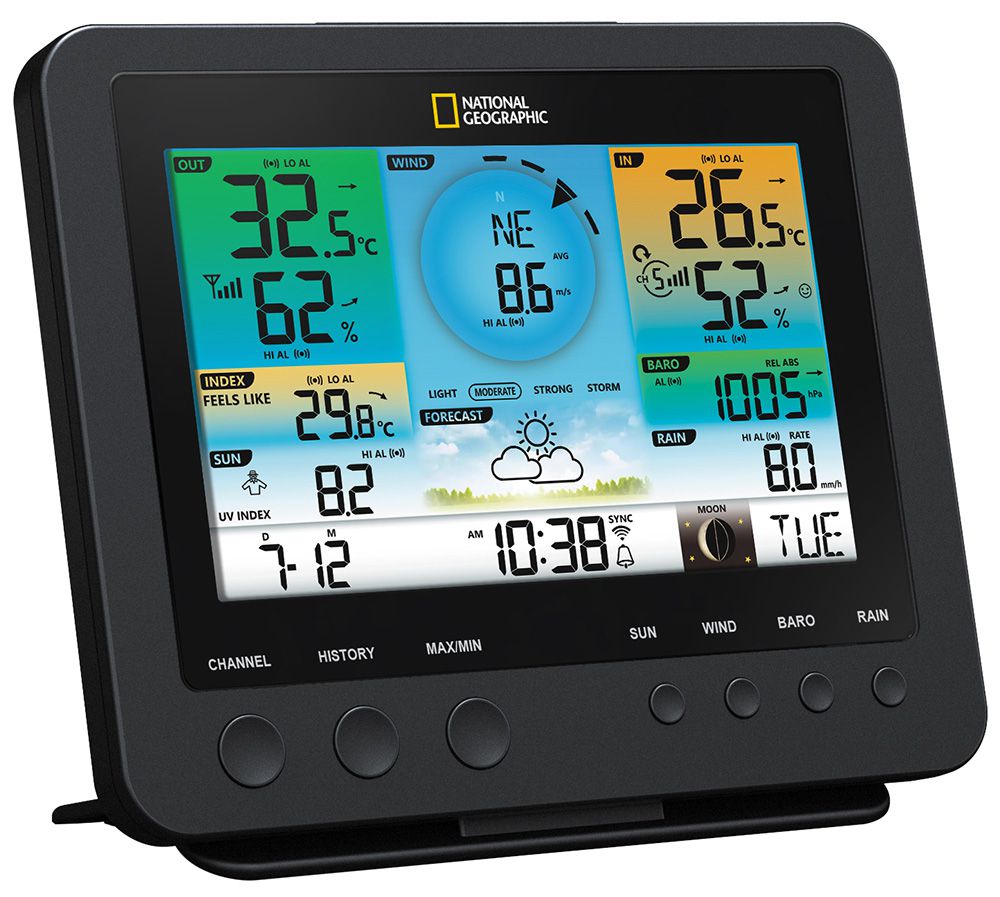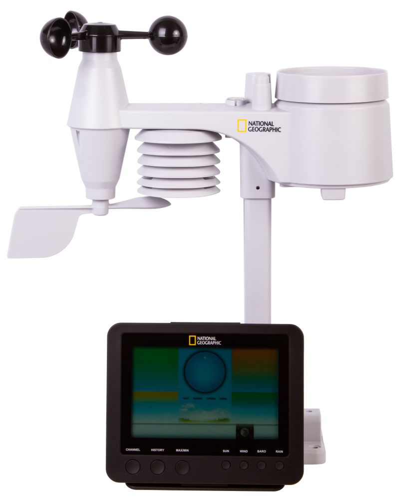 С метеостанцией Bresser National Geographic «7 в 1» Wi-Fi вам больше не будут нужны советы от профессиональных метеорологов. Этот небольшой и лаконично выглядящий прибор способен предоставить максимально полную информацию о температуре, влажности воздуха, атмосферном давлении, скорости и направлении ветра, уровне осадков и многом другом. Метеостанция отличается простой настройкой, удобным управлением и наглядным представлением данных.