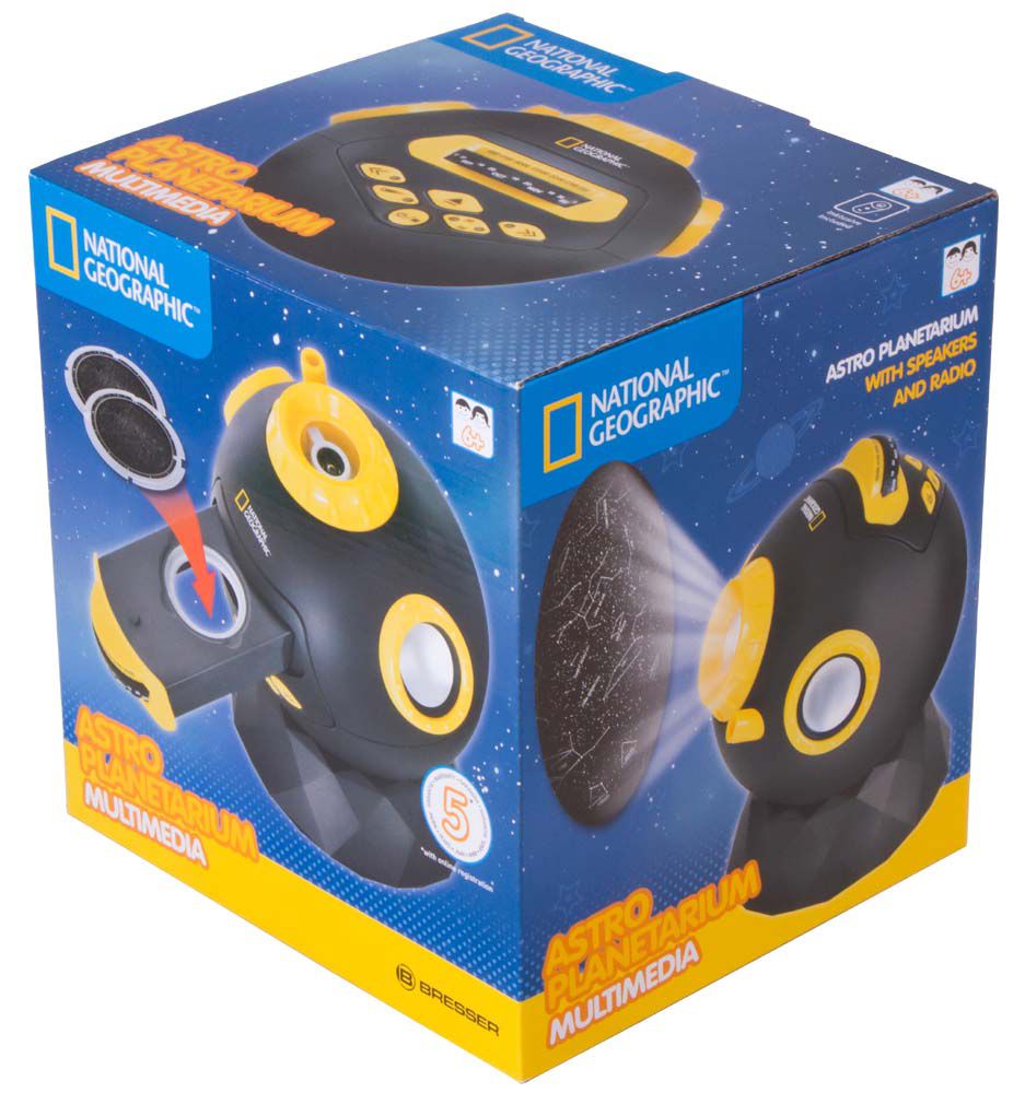 Астропланетарий Bresser National Geographic – это возможность наблюдать за красотой ночного неба, не выходя из квартиры. Прибор создает большую и яркую проекцию звезд и созвездий, позволяет слушать любимую музыку и наблюдать за падающими звездами.