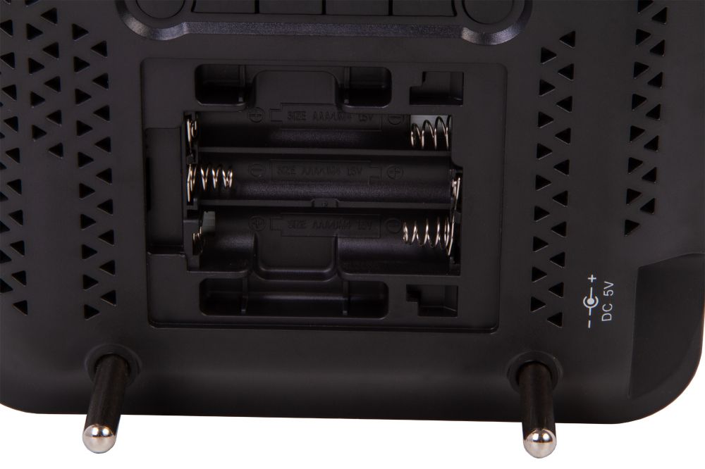 Связь между датчиками и основной базой происходит по радиоканалу. Для питания метеостанции требуется подключение к сети, датчики работают от батареек.