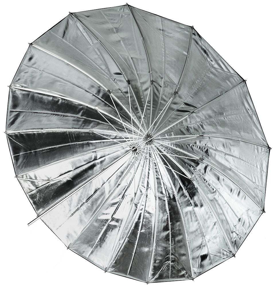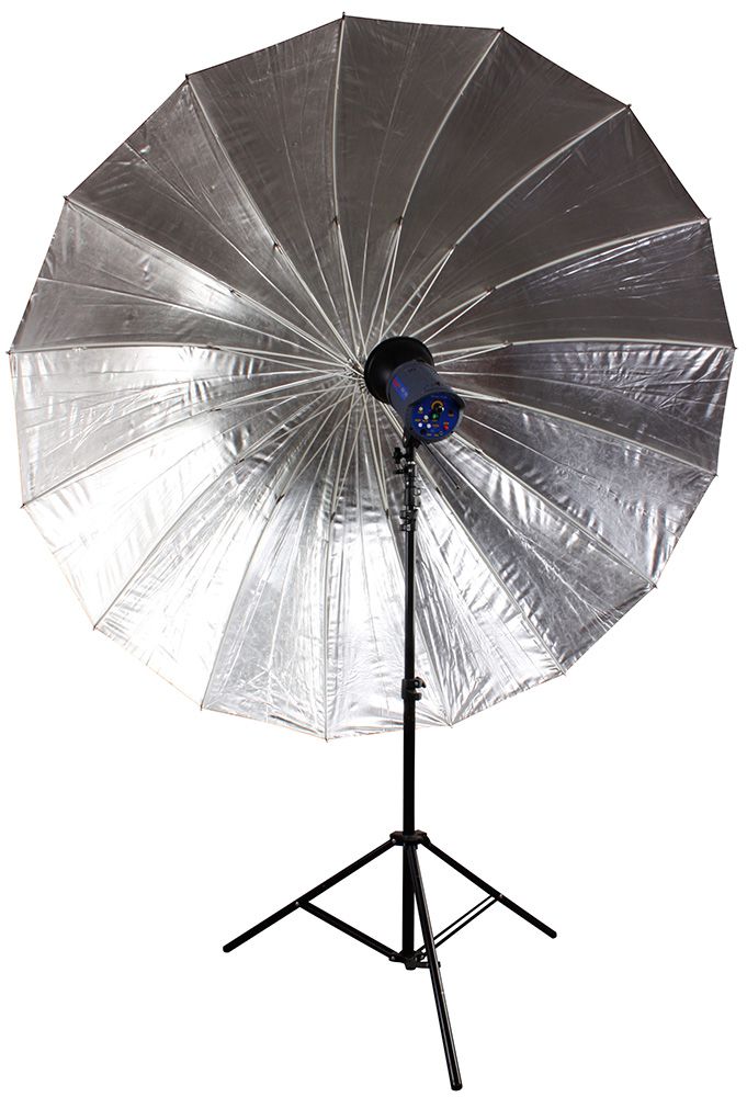 Перед вами большой студийный фотозонт Bresser SM-09 Jumbo, размер купола которого составляет 180 см. Зонт на отражение с серебристым внутренним покрытием полезен для создания жесткого освещения, которое подчеркивает мелкие детали и усиливает контраст. Внешняя поверхность купола выполнена из черной ткани. Этот фотозонт можно сочетать с любыми фотовспышками и осветителями, имеющими крепление для зонта. Особенно эффективен он будет при использовании маломощных источников света.