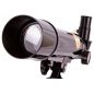 Телескоп Bresser National Geographic 50/360 AZ – это рефрактор начального уровня для наземных наблюдений и изучения Луны. Он установлен на азимутальную монтировку, которой ребенок сможет управлять самостоятельно, и небольшую настольную треногу. В комплекте с телескопом идут оптические аксессуары, окуляры и диагональное зеркало.