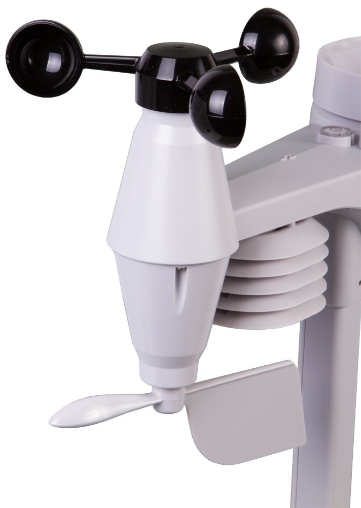 Монохромный экран основного модуля вмещает всю метеоинформацию. Данные разделены на блоки, поэтому в них легко ориентироваться. Время, дата, температура, влажность воздуха, скорость ветра и уровень осадков представлены цифрами. Направление ветра, прогноз погоды, фаза Луны и уровень общего комфорта – в виде изображений разного размера. Также есть шкала индекса Бофорта.